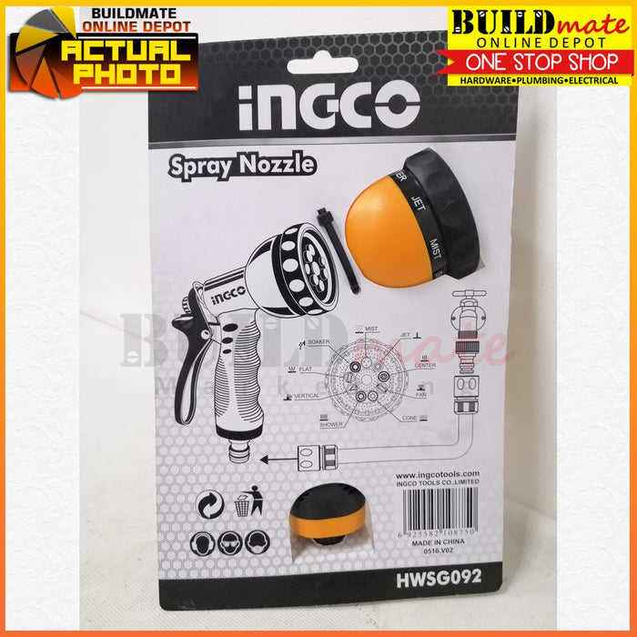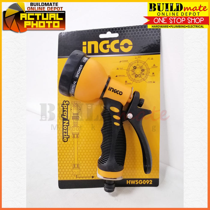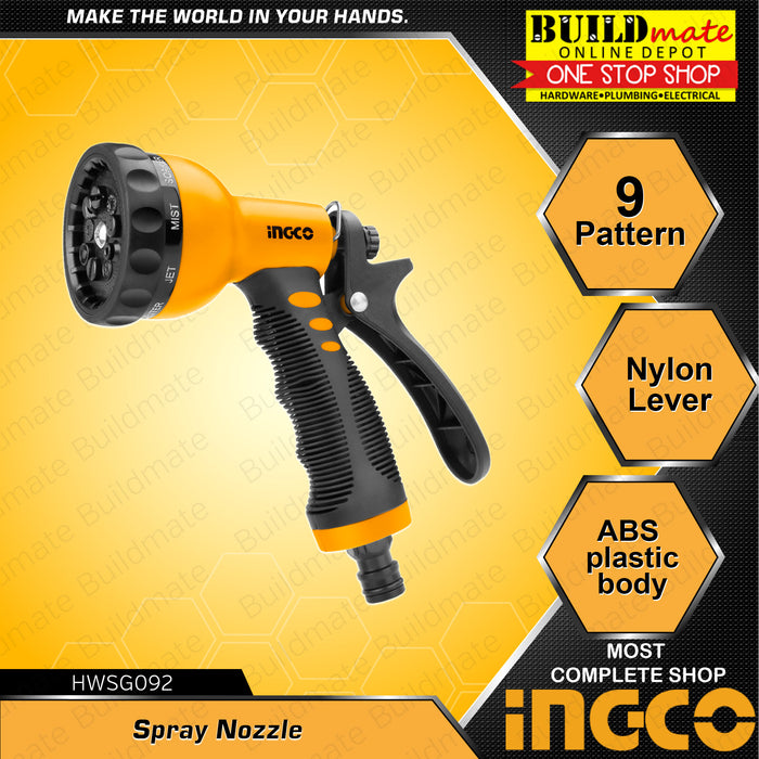 INGCO 9 Pattern Way Spray Nozzle Gun [SOLD PER PIECE] Nylon Lever Garden Soft Grip High Pressure Hand Sprayer with Flow Control Best for Watering Plants & Lawns, Washing Cars & Pets •BUILDMATE• IHT