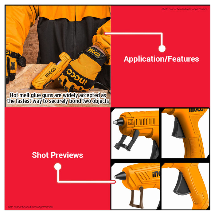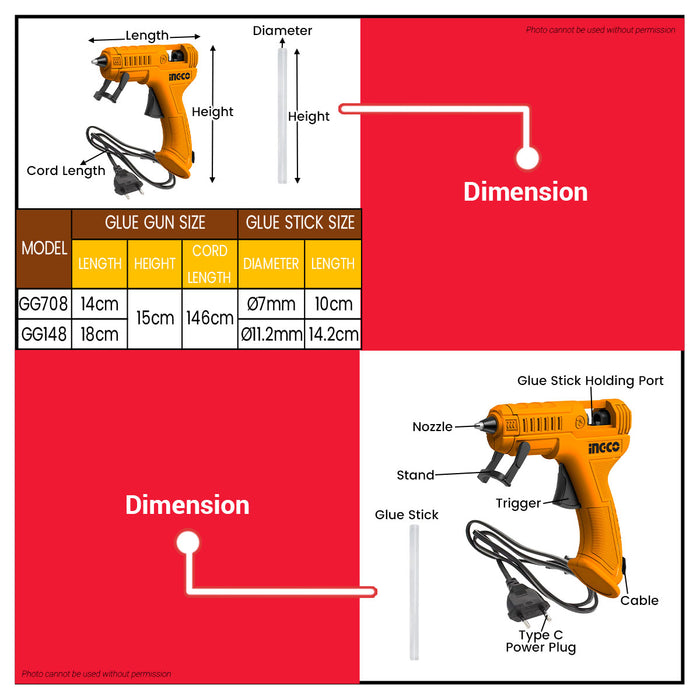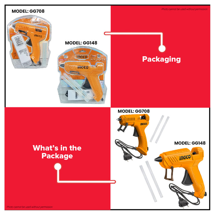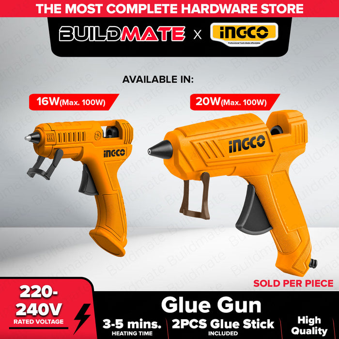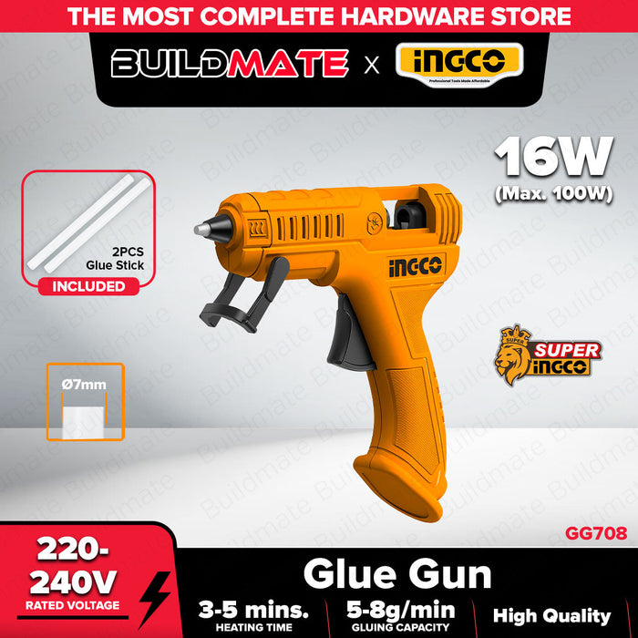 BUILDMATE Ingco Corded Hot Glue Gun 100W | 12W [SOLD PER SET] 11.2mm | 7mm Electric Glue Gun High Temperature Adhesive Hot Melt Gluegun Heavy Hot Glue Gun for Arts Craft with Glue Stick GG148 | GG708 • IPT