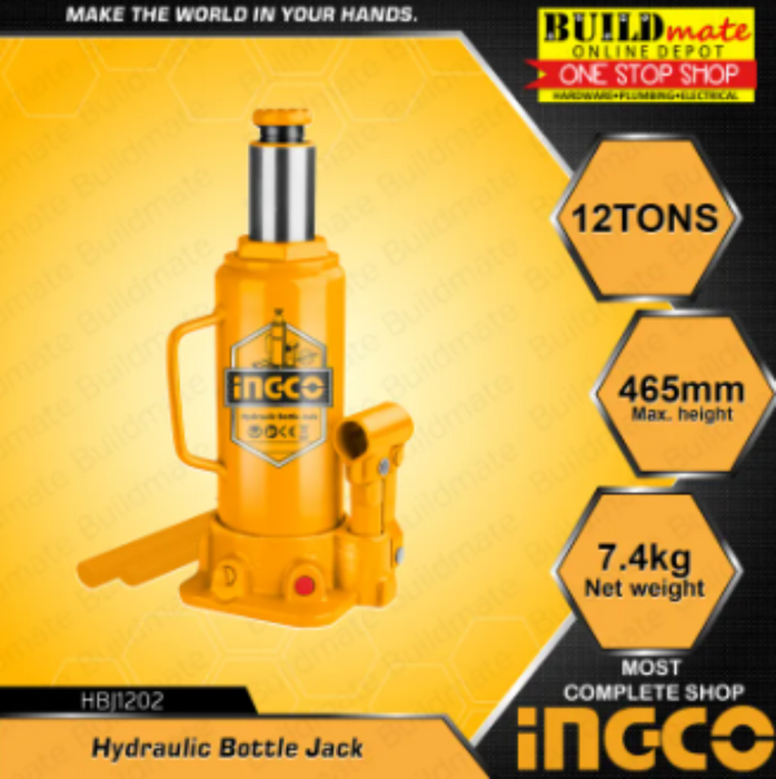 INGCO Hydraulic Bottle Jack 12 TONS HBJ1202 •BUILDMATE• IHT