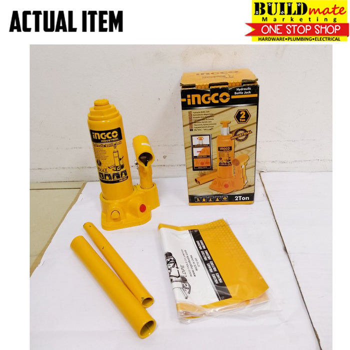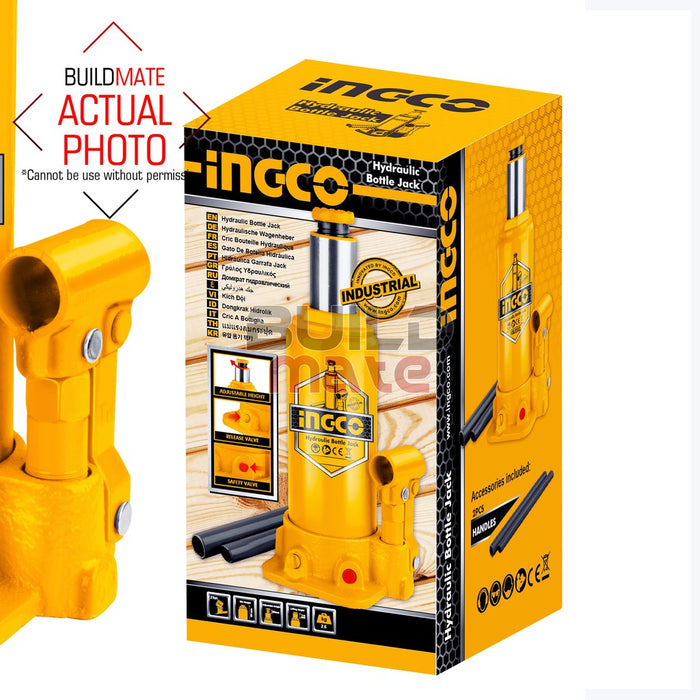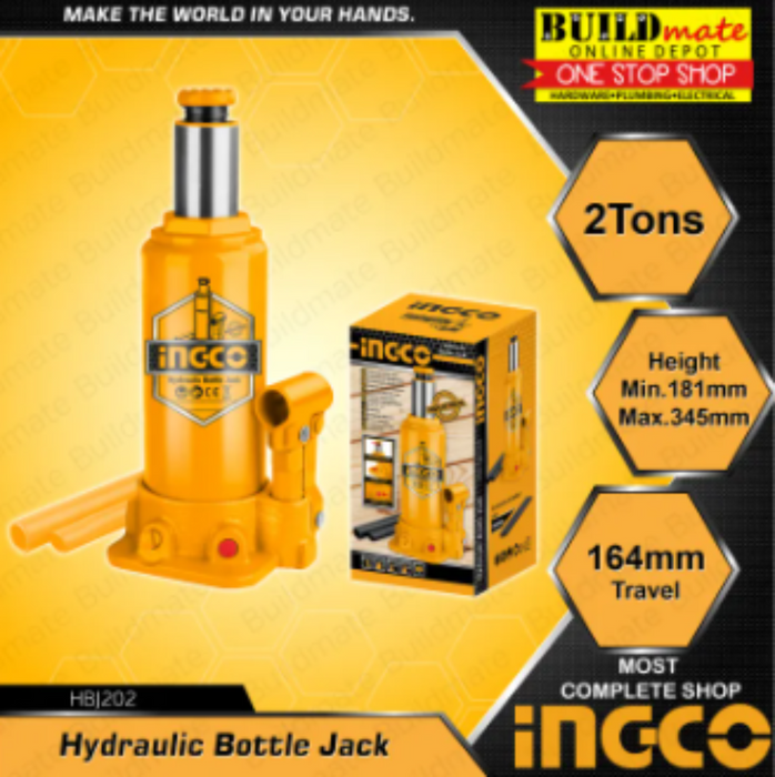 BUILDMATE Ingco Hydraulic Bottle Jack 2 TONS with Safety Valve (2.6kg) Easy Lifting HBJ202 • IHT