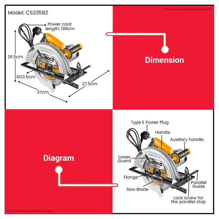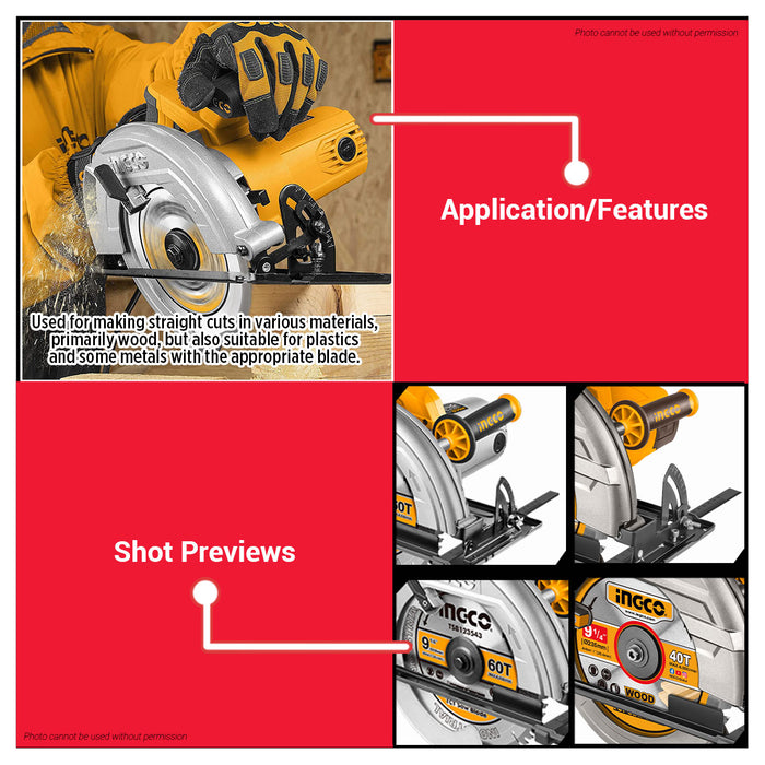 INGCO Industrial Circular Saw 9" 2200W CS23582 + FREE T HANDLE & BITS •BUILDMATE• IPT