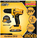 BUILDMATE Ingco 20V Lithium-Ion Cordless Drill 40Nm / 45Nm 2-Speed Mechanical Gear Drilling Gun with Integrated Work Light SOLD PER SET CDLI20051 / CDLI20032 - ICPT