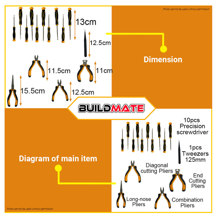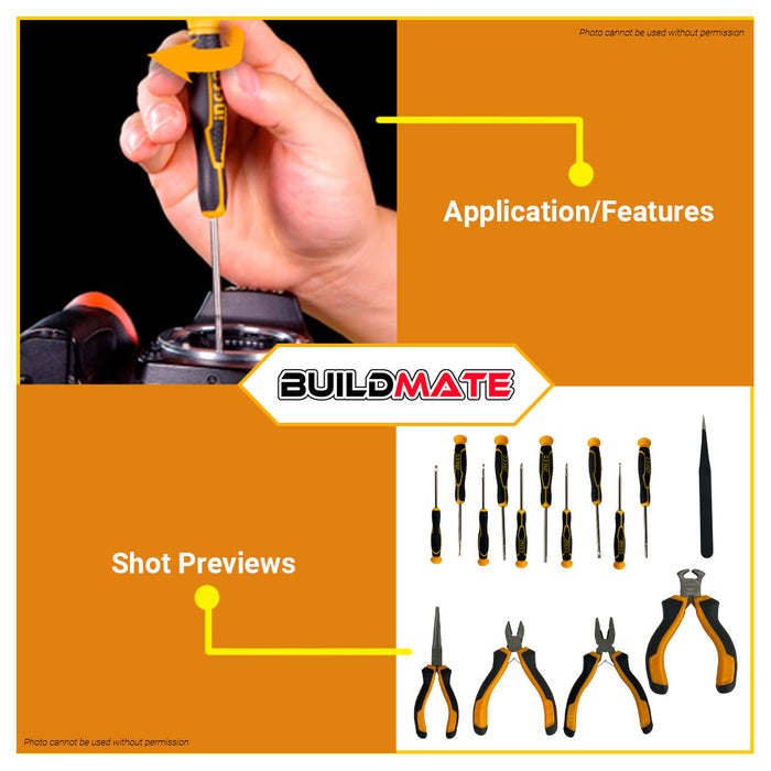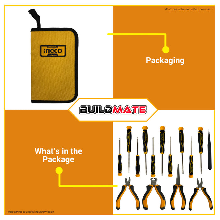 BUILDMATE Ingco 15PCS Precision Screwdriver Tools Set with Bag , Tweezer & Pliers Hand Tool HKTTS0151 - IHT