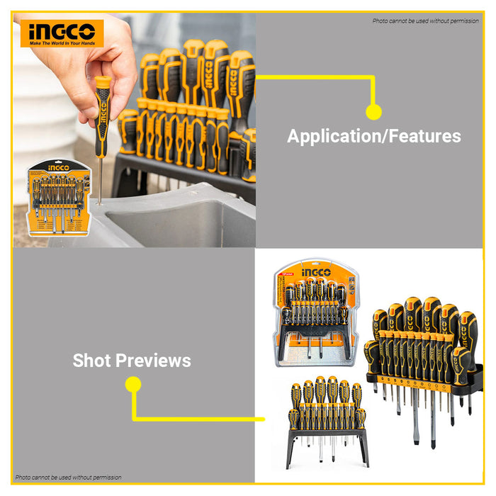 BUILDMATE Ingco 18PCS Screwdriver Set Flat & Philip Round Shank & Flathead Slotted Crosshead Repair Tool Kit Hand Tool HKSD1828 • IHT