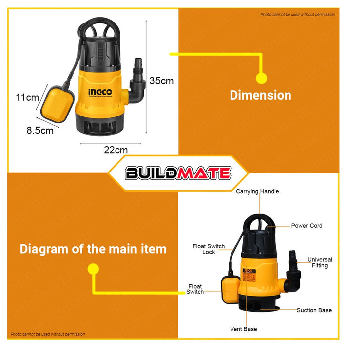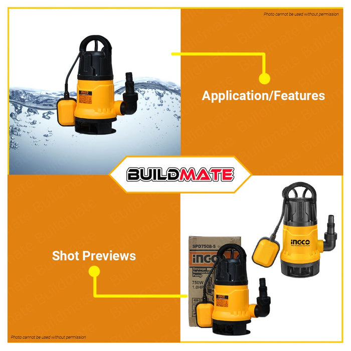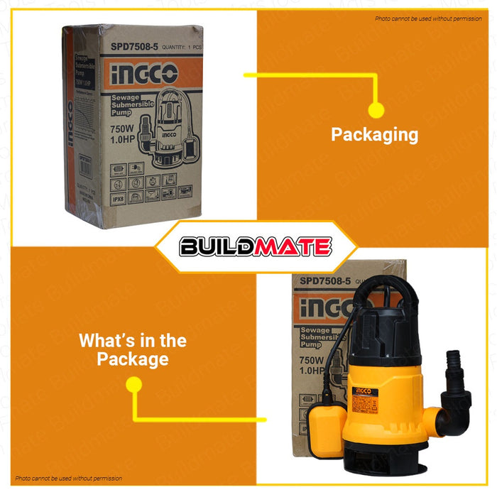 INGCO Sewage Submersible Pump 750W 1.0HP Submersible Water Transfer Pump SPD7508-5 •BUILDMATE• IPT