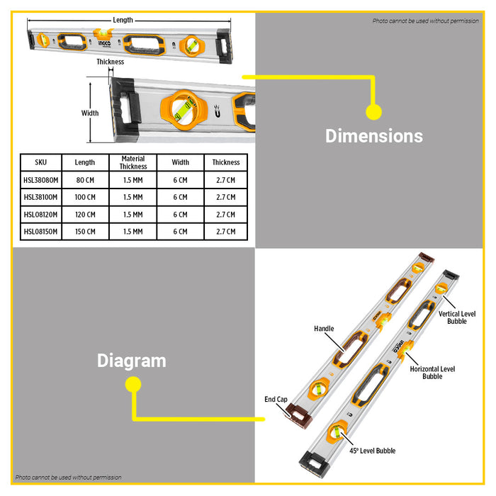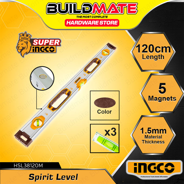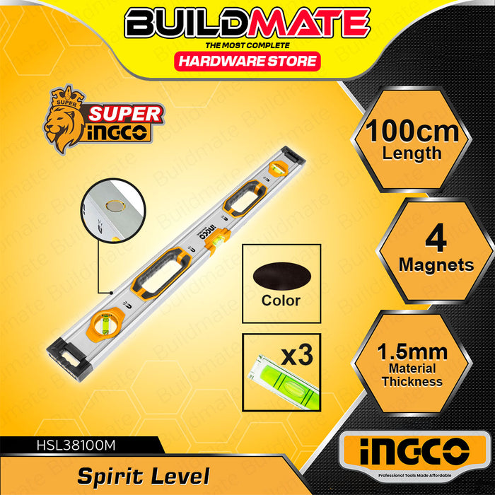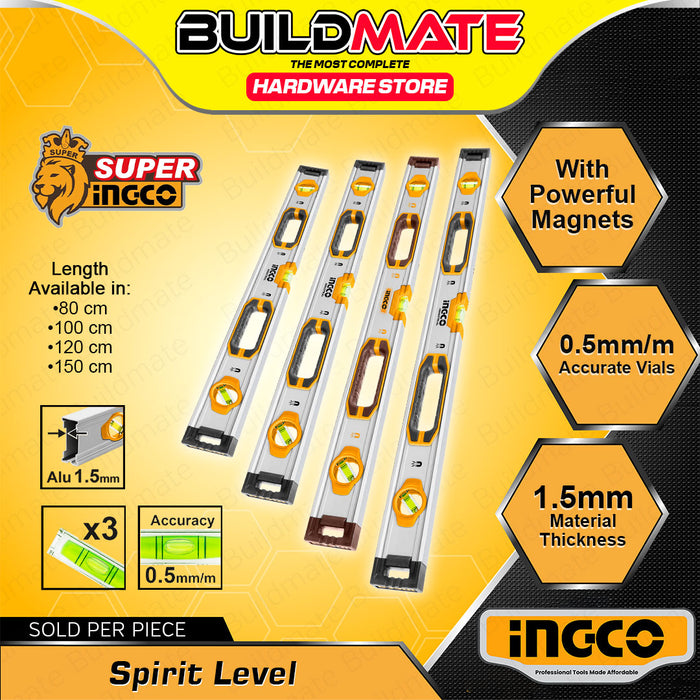 BUILDMATE Ingco Spirit level with Powerful Magnets 80cm - 150cm Double Side Milled Bubble Alignment Leveling Measurement Tool - IHT