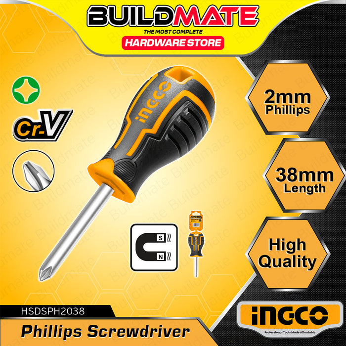 BUILDMATE Ingco Magnetic Stubby Mini Phillips Screwdriver 6mmx38mm Round Shank SOLD PER PIECE HS68PH2038 / HSDSPH2038 - IHT