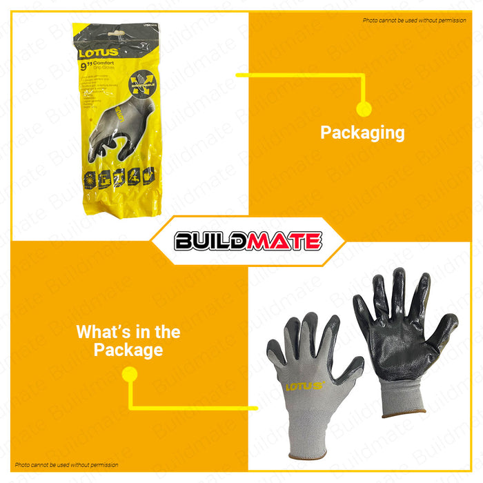 BUILDMATE Lotus 9" Inch Rubber Gloves Safety Work Coated Protective Garden Gloves LHT