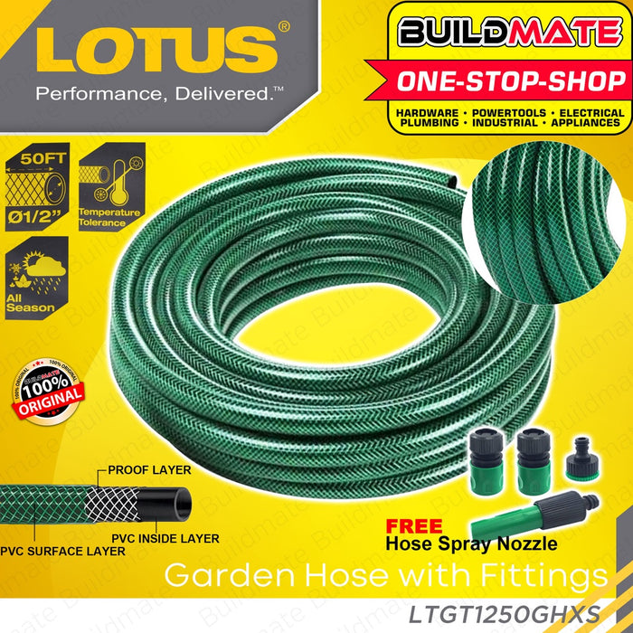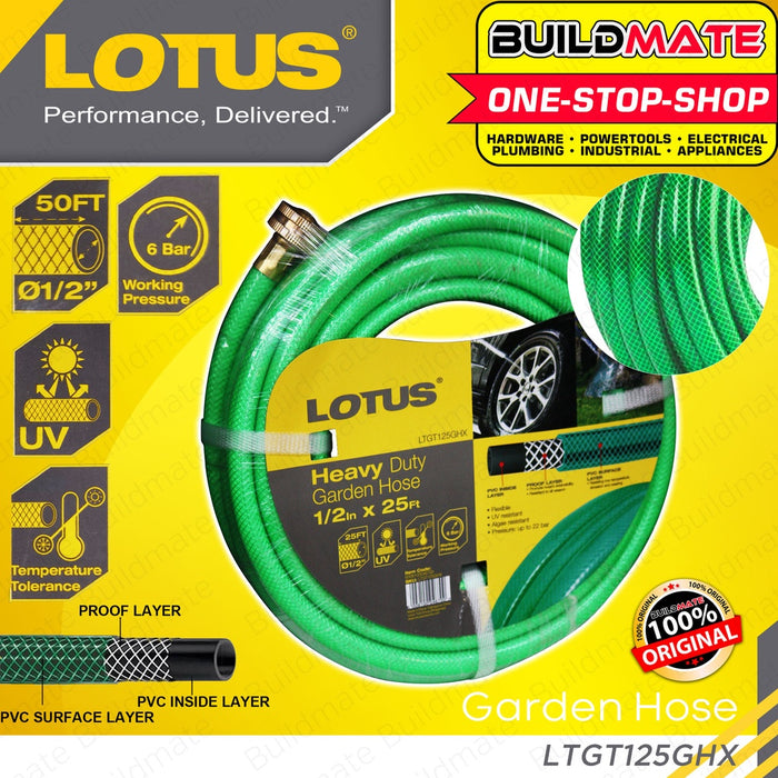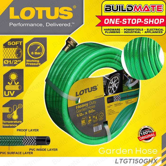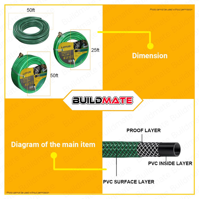 LOTUS Water Garden Hose 1/2"x25Ft | 1/2"x50Ft | 1/2"x50Ft With Hose Spray Nozzle Set PVC Garden Hose Gardening Hose For Gardening Garden Tools Lawn & Garden LTGT125GHX | LTGT150GHX | LTGT1250GHXS | 100% ORIGINAL / AUTHENTIC •BUILDMATE•