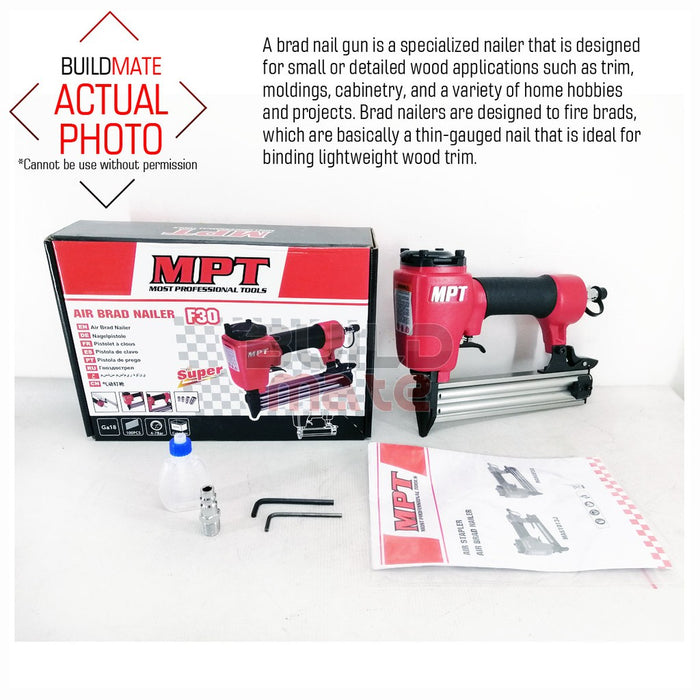 BUILDMATE MPT Air Brad Nailer F30 Pneumatic Gun Ga18 for Woodworking and Carpentry MANF30