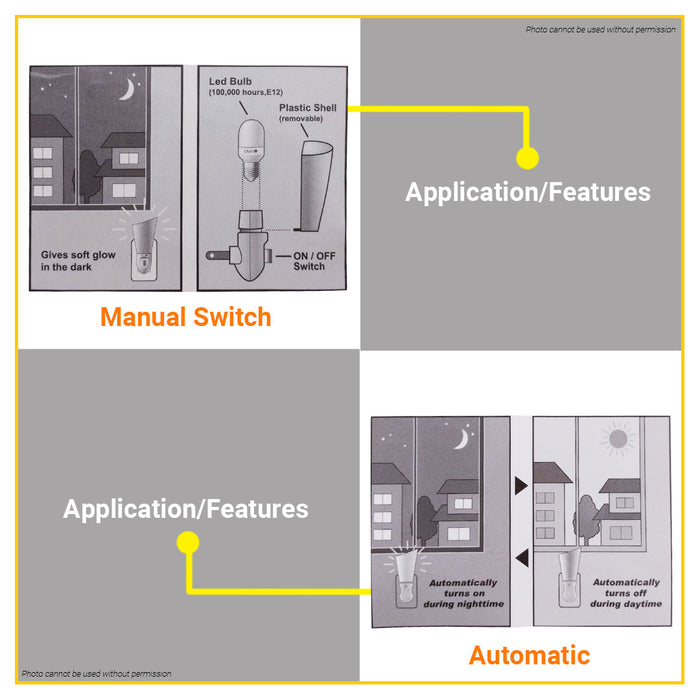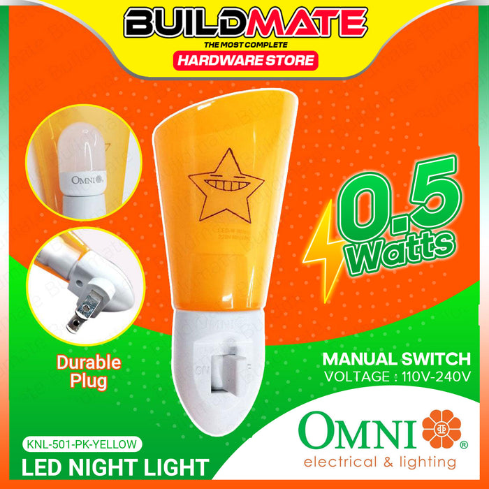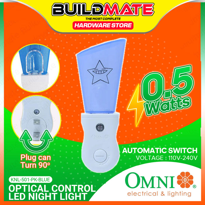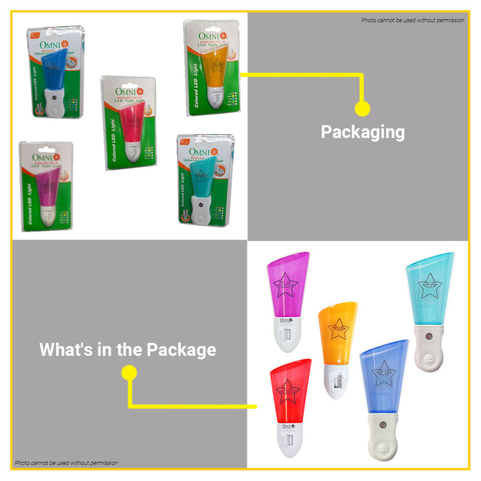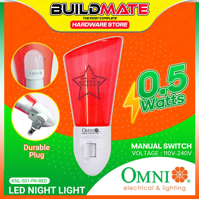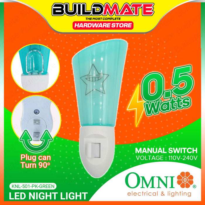BUILDMATE Omni 0.5W E12 Mini Colored LED Night Light Built-In Light Sensor Automatic / Manual Switch for Bedroom & Office KNL-501-PK