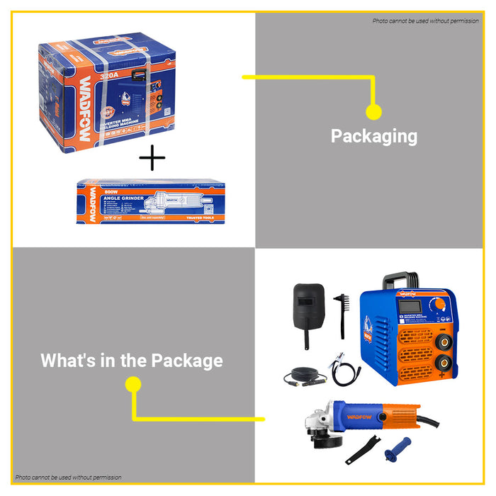 [SET] BUILDMATE Wadfow 320A IGBT Inverter MMA Portable Welding Machine With 800W Angle Grinder Welder's Welding & Grinding Power Tools Combo Set - WPT