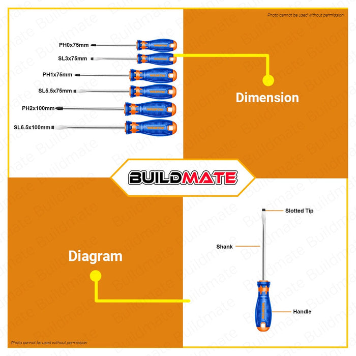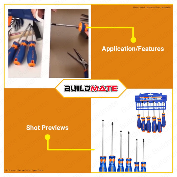 WADFOW 6PCS Screwdriver Set Phillips & Slotted Screw Driver Hand Tools Set WSS1206 •BUILDMATE• WHT