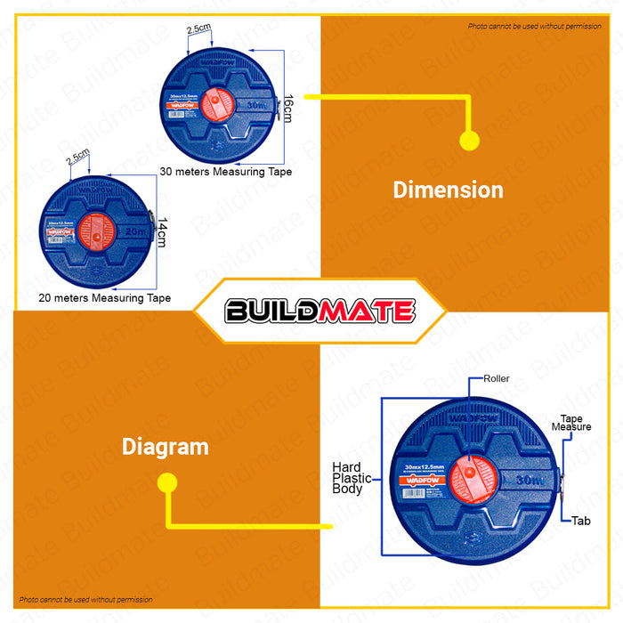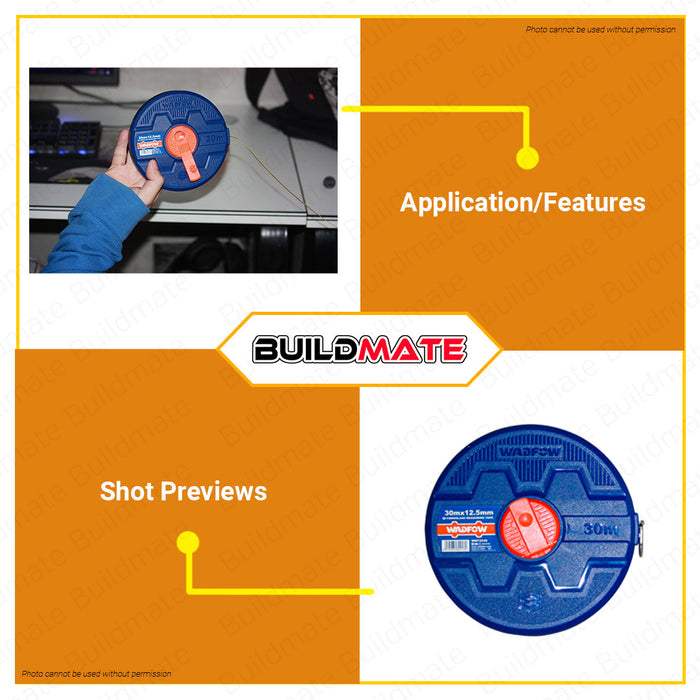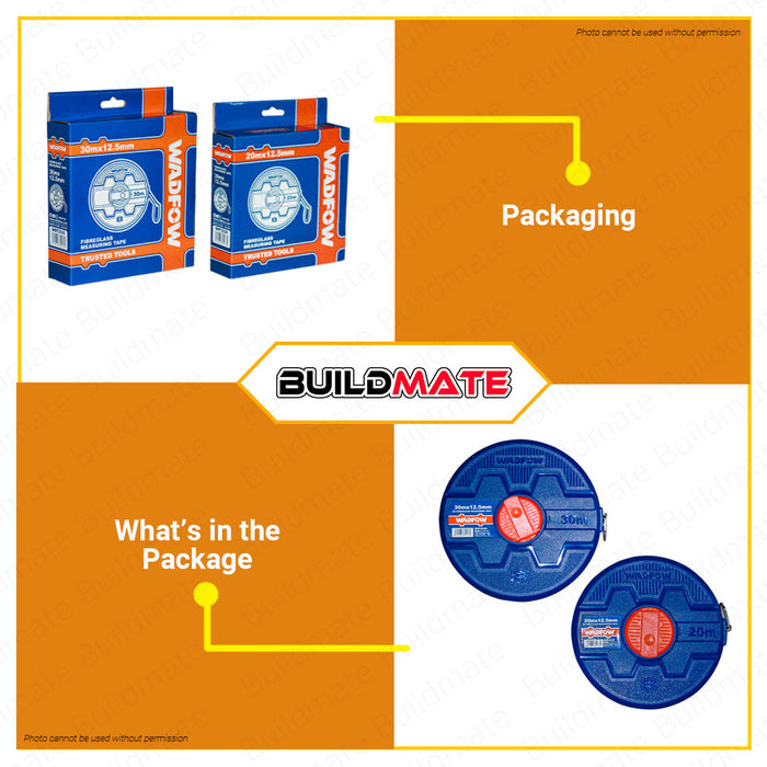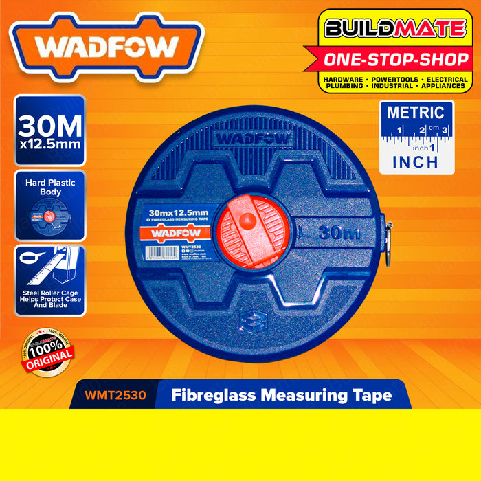WADFOW Fiberglass Measuring Tape 20mx12.5mm | 30mx12.5mm Wheel Tape Measure Tape Tools Metric & Inch Measuring Meter Continuous Marking Blade Easy To Read Both Side Dual Ruler Hand Tool WMT2520 | WMT2530 •BUILDMATE• WHT