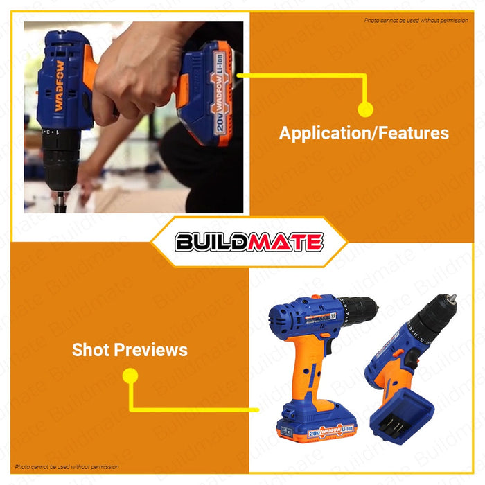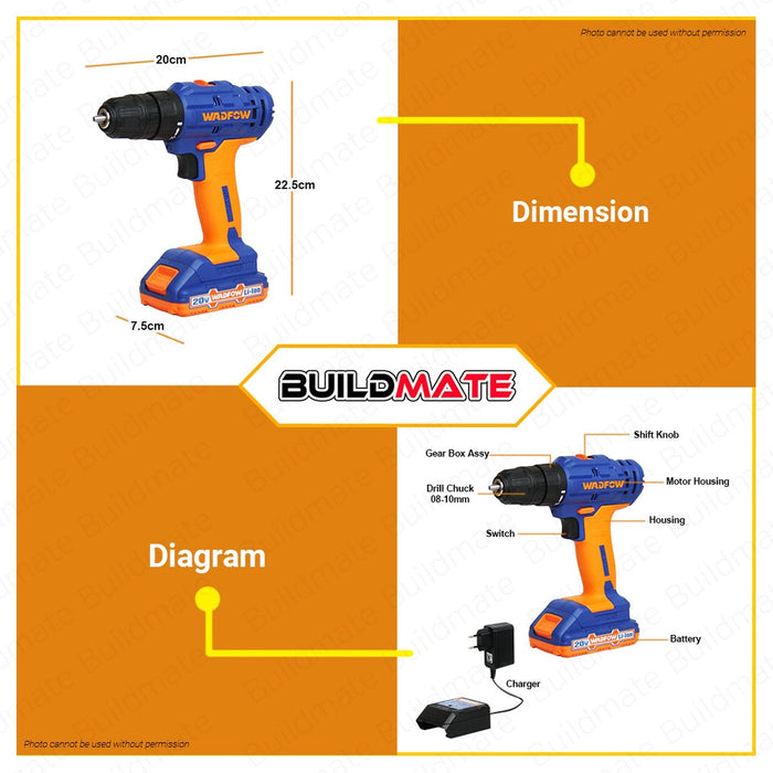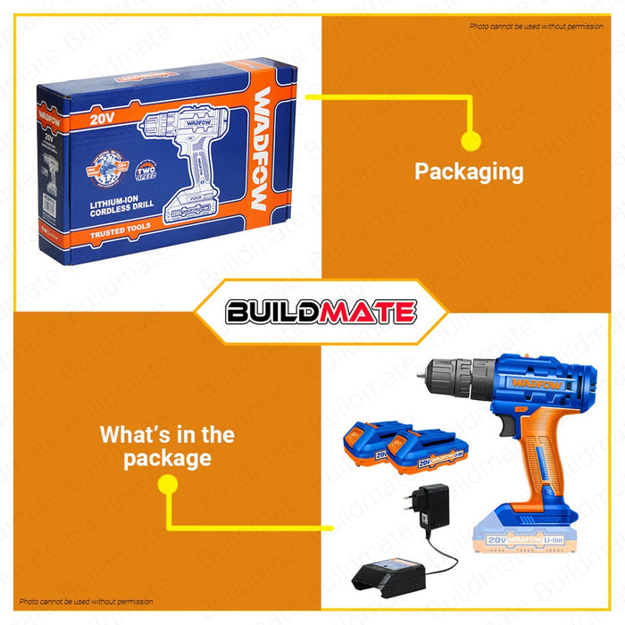 WADFOW Lithium-Ion Li-Ion Cordless Drill Gun 20V with 2x Battery & Charger WCDP512 •BUILDMATE• WCPT