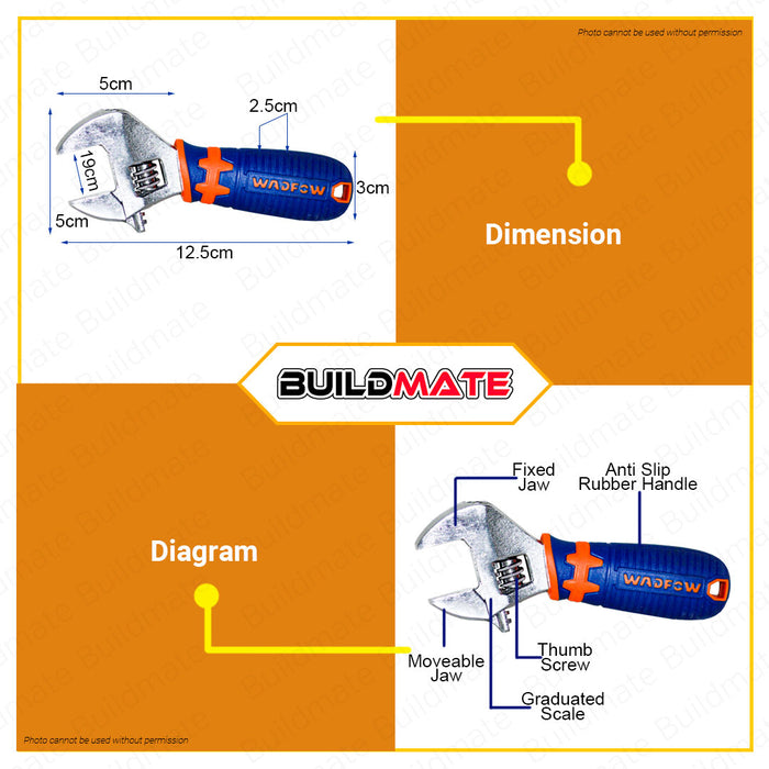 WADFOW Mini Adjustable Wrench 5.5" Inch 134mm Wrenches Unique Design Two Toned Soft Handle Hand Tool Wrenches WAW3106 •BUILDMATE• WHT