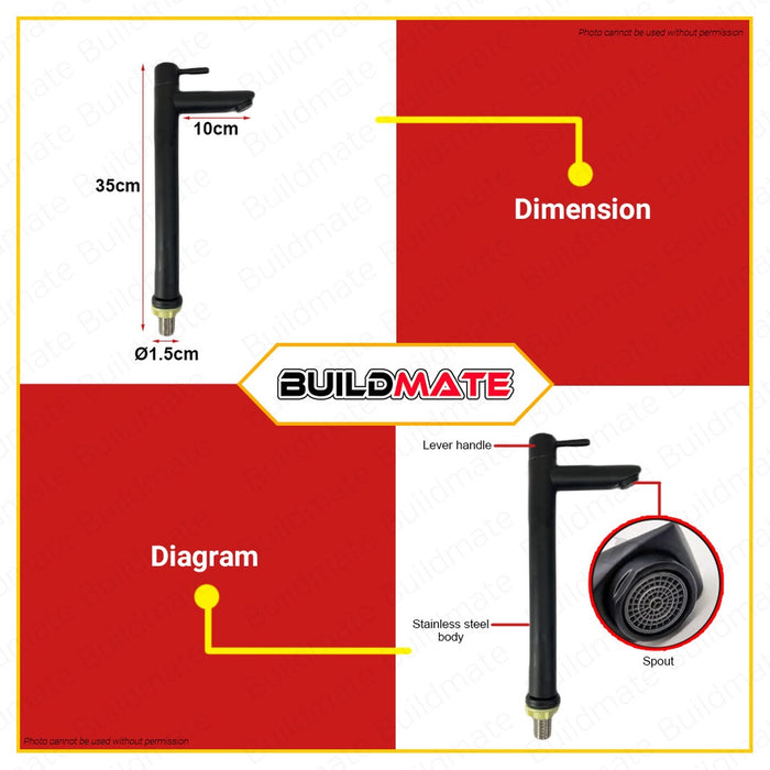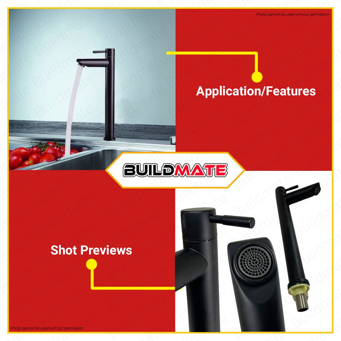 WSDA SF-310BK Stainless Steel SUS 304 Matte Black Single Cold Kitchen Faucet Lavatory •BUILDMATE•